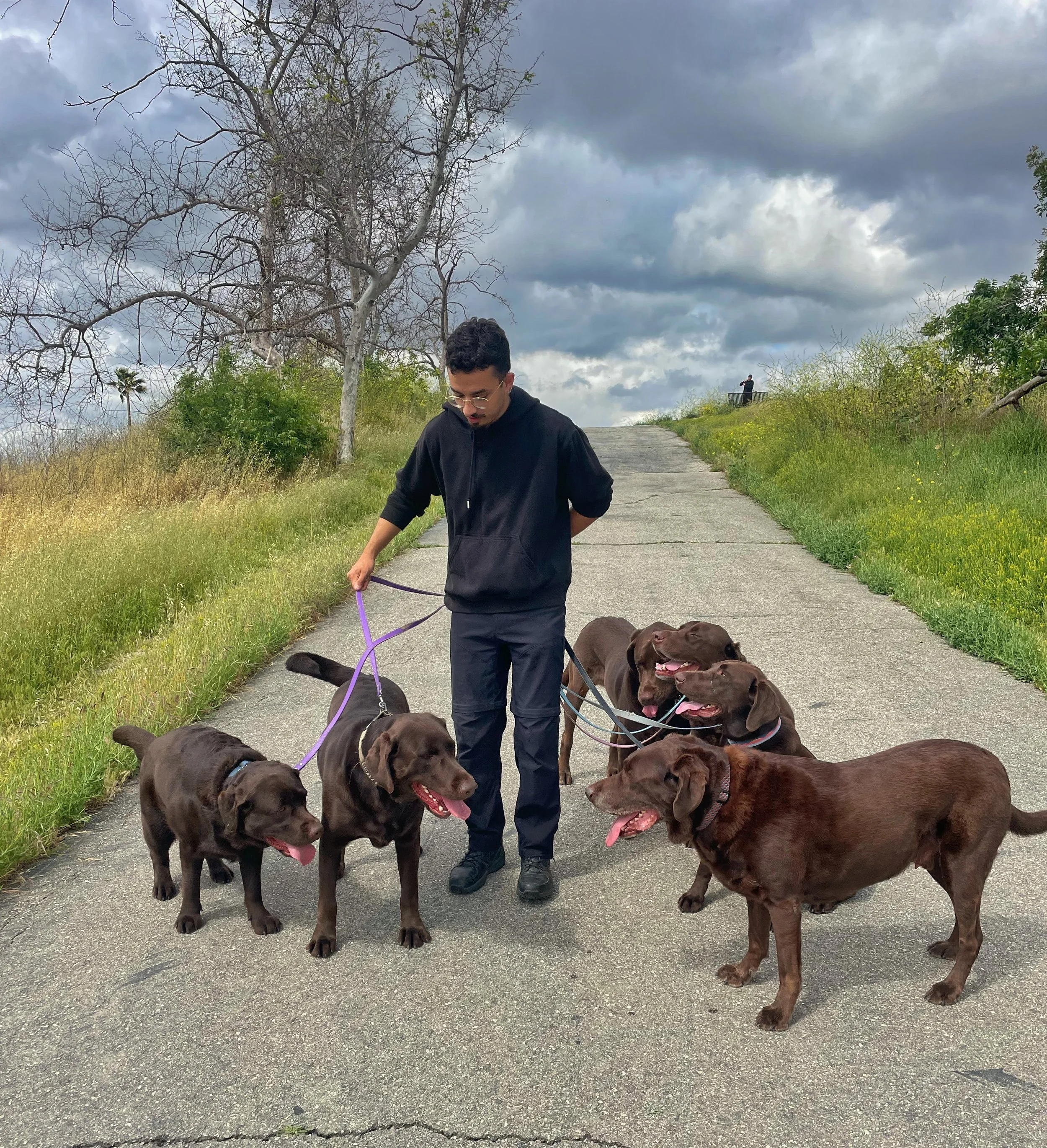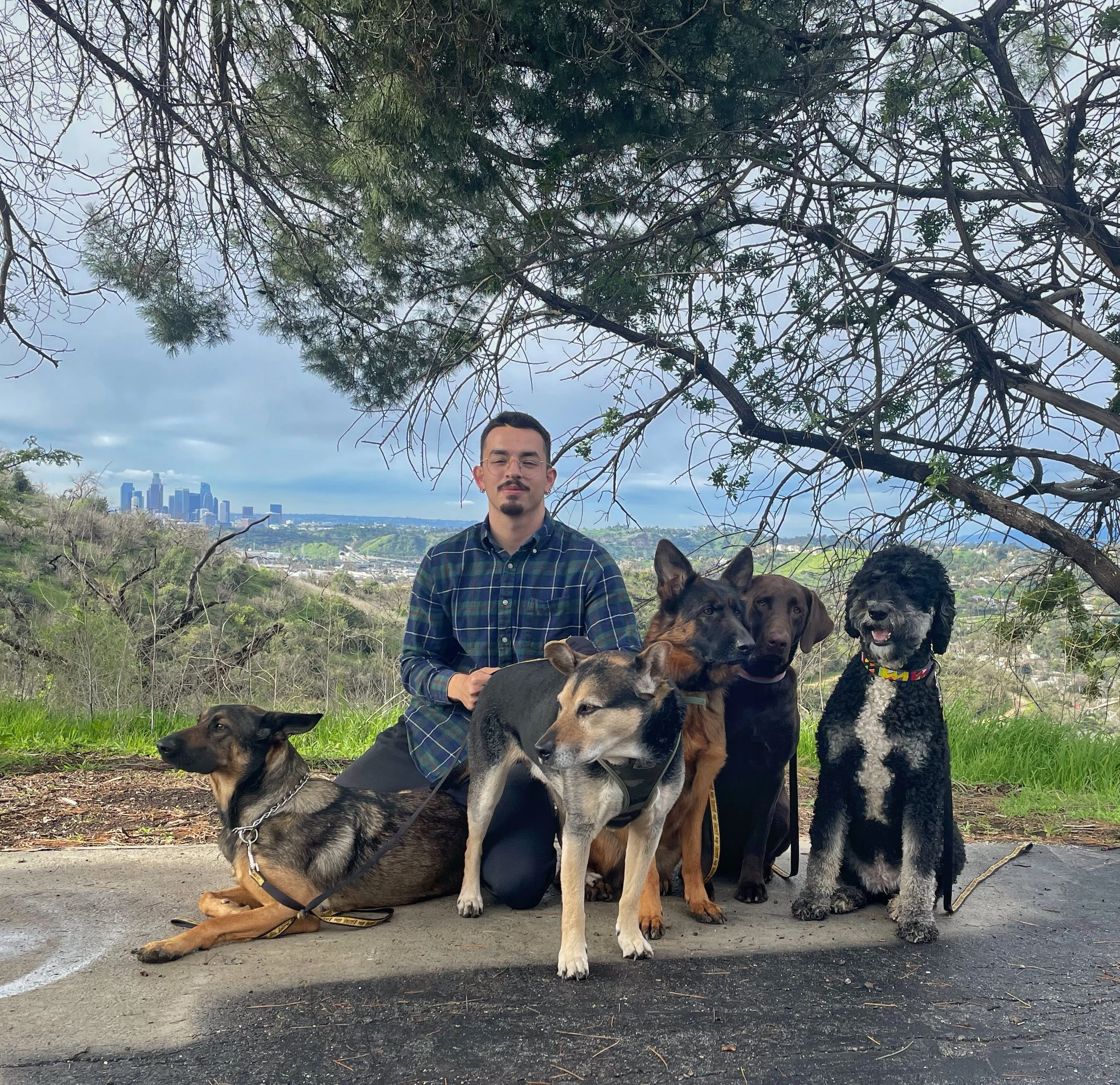 My dog journey started as a child growing up in Los Angeles always being around dogs. As a boy I had two small Shih Tzus and a large Rottweiler. My Rottweiler and I had a special bond and it was with him that I started exploring the many great hiking trails all over Los Angeles. Dogs have always fascinated me for as long as I can remember, even as a young boy I always took pride in knowing all the different dog breeds and knowing cool weird facts about them all. Now many years later, I’ve worked many dog related jobs from large industrial scale dog hotels, to rehabilitation centers for German Shepherds with an array of behavioral problems, to freelance dog walking, sitting and training and finally my most recent endeavor at Adventure Dog LA where I was mentored by the company founder and expert dog trainer William Hathaway.